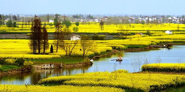 千島菜花風(fēng)景區(qū):位于江蘇省興化市缸顧?quán)l(xiāng)東旺村東側(cè),總面積近萬畝。 在泥土缺乏的澤國,先民們從水下取土,一方一方使其堆積如垛。千百垛田漂浮于水中,云蒸霞蔚,煞是壯觀。陽春時(shí)節(jié),金黃色的油菜花盛開于垛田之上,猶如一朵朵祥云飄舞于水面,又似一片片流霞散落在人間。人們置身于一望無際的千島菜花間,感受隨風(fēng)而來的醉人菜花香,有心曠神怡之感、美不勝收之慨。