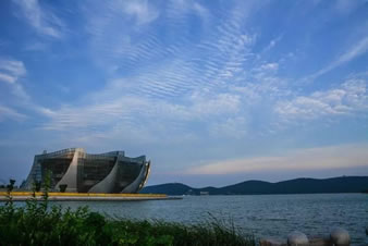徐州水上世界,是設(shè)在湖中心的一座大型水族館,4A景區(qū)。它座落在云龍湖的湖心島上,其外形如長(zhǎng)鯨擊水,又似白豚臥波,這個(gè)形象被制作成"錦繡中華"紫砂浮雕,鑲嵌在北京人民大會(huì)堂中央廳的墻壁上。