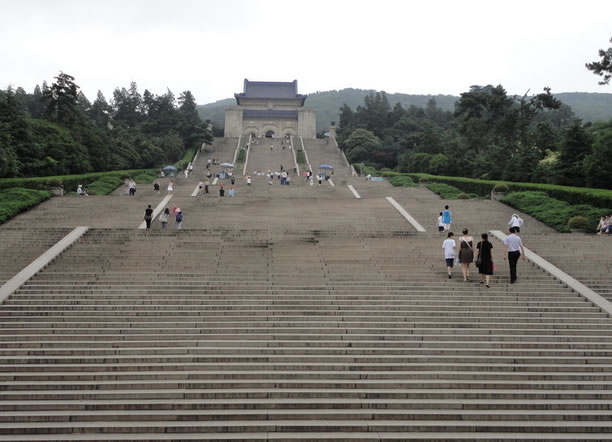 而從碑亭到祭堂,共有石階339級,象征當時國民黨參眾二院議員為339人,寓意每人作為一個臺階,將中山先生的精神發(fā)揚光大,其中的9寓意九州大同。迎面的這一段共有290階,分為8段,象征著三民主義五權憲法。臺階全部用蘇州金山花崗石砌成。最高的平臺有華表兩座,后為祭堂。