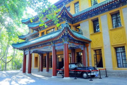 美齡宮是蔣介石及其夫人宋美齡下榻的別墅,正式名稱為“國民政府主席官邸”,有“遠東第一別墅”的美譽。美齡宮主體建筑是一座三層重檐山式宮殿式建筑,頂覆綠色琉璃瓦。在其房檐的琉璃瓦上雕著1000多只鳳凰,是中國唯一一例。整座建筑富麗堂皇,內(nèi)部裝飾奢侈豪華,裝飾以旋子彩繪,特別是藍底云雀瓊花圖案出自工筆畫家陳之佛之手,獨一無二。四周林木藏盛,終年百花飄香。汽車可直抵宮門,樓底層為接待室、秘書辦公室等,二樓西邊是會客室、起居室,東邊是蔣介石、宋美齡夫婦臥室。