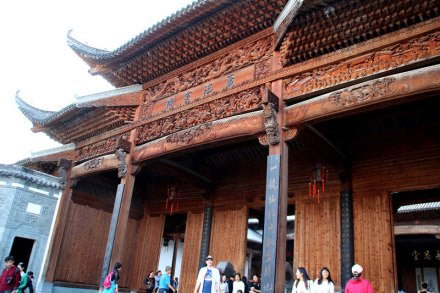 蕭江宗祠 又名永思祠,座落在婺源縣江灣鎮(zhèn)占坑村,距婺源縣城32公里,江灣約2公里。始建于明朝萬歷六年(1587年),后毀于太平天國戰(zhàn)火。1924年(民國十三年)重建,文化大革命期間又被拆毀。蕭江宗祠曾被譽為江南七十座著名宗祠中“最好的一座宗祠”為婺源古代四大古建之首。2003年9月,第三次重建。該祠盡顯王室氣派,占地面積達(dá)2400平方米,分前院、前堂、中堂、后堂四進(jìn)。前院為寬敞花園,設(shè)有青石護(hù)欄半月形蓮花池,內(nèi)養(yǎng)紅鯉魚、草魚、軍魚等多種魚類;前堂為五鳳樓、九脊頂、午朝門、月樓,梁材檐椽巧飾雕琢、畫面生動、形態(tài)逼真;中堂粗梁大柱,鼓式石礎(chǔ),石階、石欄、月臺各具特色,匾額楹聯(lián)措詞秀麗、授意深長;后堂高于前堂,有樓閣安放靈牌。