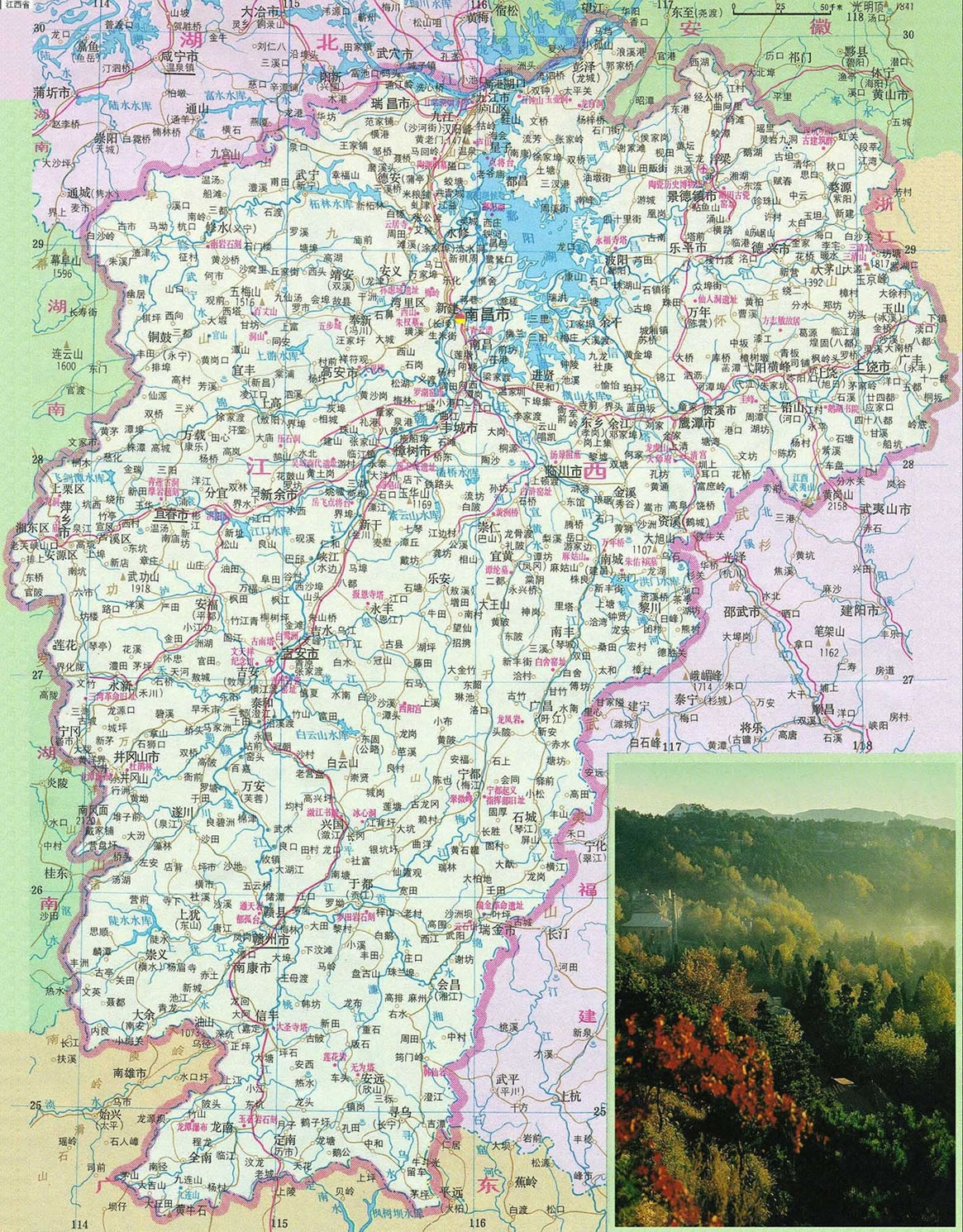 唐代詩人王勃在千古名篇《滕王閣序》中稱江西是一方“物華天寶、人杰地靈”的土地,的確,山清水秀的江西自古以來就是一個(gè)人文薈萃的地方,這片神奇的紅土地上風(fēng)景名勝眾多,文化遺產(chǎn)豐富,廬山、井岡山、三清山、龍虎山等國家級(jí)風(fēng)景區(qū)更是名揚(yáng)天下,而且這里還有中國革命的搖籃——井岡山。