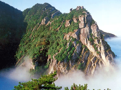 五老峰地處江西省九江市廬山東南,海拔1436米,高度194米。因山的絕頂被埡口所斷,分成并列的五個山峰,仰望時像席地而坐的五位老翁,故人們便把這原出一山的五個山峰統(tǒng)稱為“五老峰”。五老峰根連鄱陽湖,峰尖觸天,是全山形勢最雄偉奇險的景點。五峰中以第三峰最險,奇巖怪石千姿百態(tài);第四峰最高,峰頂云松彎曲如虬,下有五小峰,即獅子峰、金印峰、石艦峰、凌云峰和旗竿峰,再往下為觀音崖,獅子崖,背后山谷有青蓮寺。