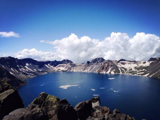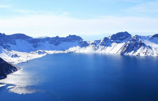 長白山天池,又稱白頭山天池,坐落在吉林省東南部長白山自然保護區(qū)內(nèi),是中國和朝鮮的界湖,雙方各擁有一部分水域。天池南北長約4400米,東西寬約3370米,其池水的海拔高度為2189.1米,最深處為373米,平均204米,水面面積9.82平方千米,周長13.1千米。據(jù)《長白山江岡志略》記載:“天池在長白山巔的中心點,群峰環(huán)抱,離地高約20余里,故名為天池。”