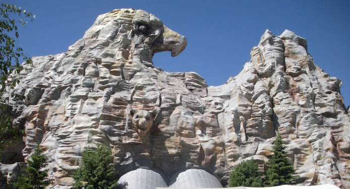 巨幕影院,位于長(zhǎng)影世紀(jì)城西南部,建筑外形酷似冰山,內(nèi)部座位400個(gè),設(shè)有高18米、寬25米熒幕,稱為巨幕影院,6.1聲道的立體效果,和立體特效影像相結(jié)合。