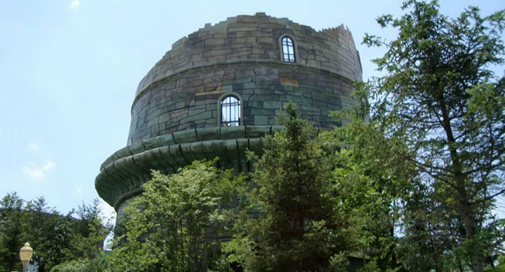 斗轉(zhuǎn)星移,位于長(zhǎng)影世紀(jì)城西側(cè),建筑外形為“倒種”的房子,是電影特技中光影展示,利用光影特效手段,揭示光影世界中的飛行奧秘。