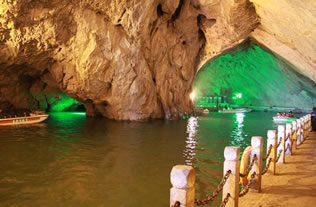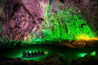 它們維妙維肖,形象逼真。特別是玉米塔、玉象和雪山三景,更是名實相符,幾可亂真。銀河兩岸鐘乳林立,石筍如畫,千姿百態(tài),光怪陸離,洞頂空窿鐘乳高懸,晶瑩斑斕,神趣盎然,沿河景點達100余處,千姿百態(tài),各具特色,泛舟其中,如臨仙境,這是水與石渾然天成的神秘洞穴,是迄今世界上已發(fā)現的最長可乘船游覽的地下暗河。