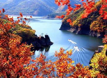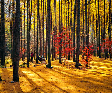 月臺(tái)子景區(qū)是主要的楓葉觀賞區(qū),每年本溪都開楓葉節(jié)。楓葉節(jié)是本溪走向全國(guó)、走向世界的橋梁,是本溪旅游事業(yè)蒸蒸日上的窗口。而關(guān)門山紅葉更是倍受贊譽(yù),每逢秋季,萬(wàn)山紅遍層林盡染,紅紅火火的楓葉也會(huì)讓您的思緒隨之蕩漾,讓您不由得想起這樣一首詩(shī):蕭蕭淺絳霞初碎,槭槭深紅雨復(fù)燃,染得千秋林一色,還家只當(dāng)是春天。伴隨著詩(shī)的優(yōu)美,我們到了月亮灣。2000年7月,我國(guó)著名的歌唱家彭麗媛曾經(jīng)到此拍攝音樂電視《世紀(jì)春雨》,這首歌曾在MTV大賽中榮獲金獎(jiǎng),大家隨著看到的就是森林浴場(chǎng),您可以漫步林中,在石桌上小憩,在秋千上放歌,尋找兒時(shí)的樂趣。