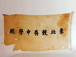 東北競存中學(xué)校旗:這面校旗,雖然多處損破,但這面旗幟是人民宣傳和進(jìn)行抗日救亡活動的光輝旗幟。