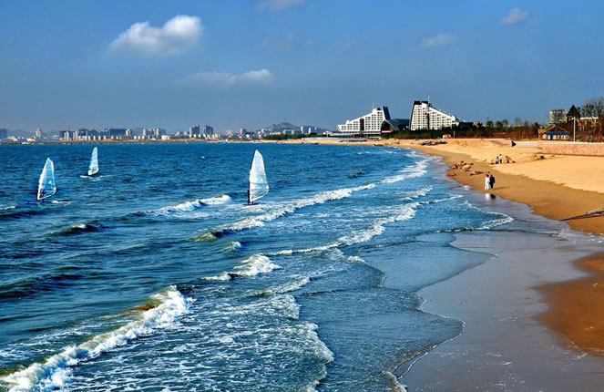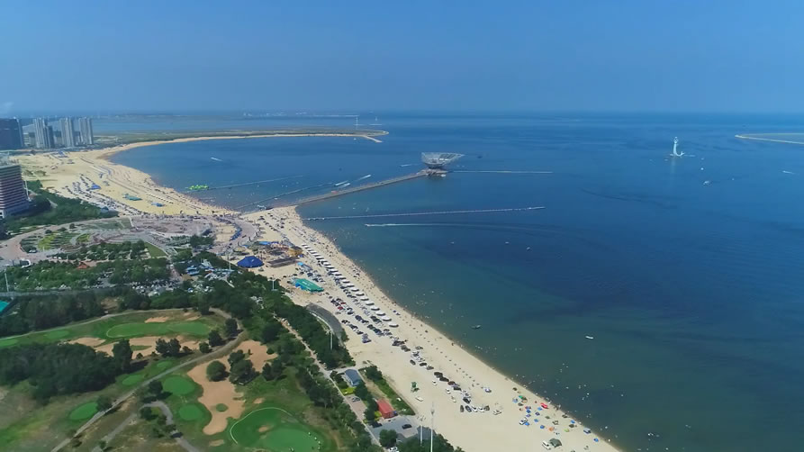 白沙灣黃金海岸(國家AAAA級風(fēng)景旅游區(qū))地處蓋州市歸州辦事處、九壟地辦事處西部,全長14.7公里,距蓋州市區(qū)46公里,距高速公路(熊岳站出口)8公里,濱海公路貫穿園區(qū)。面臨渤海,以海域風(fēng)光為主,海岸蜿蜒,沙灘細(xì)軟,形如新月,景色壯麗。白沙灣是一個(gè)在綠樹掩映之下的海濱浴場,人稱“東北第一灘”。