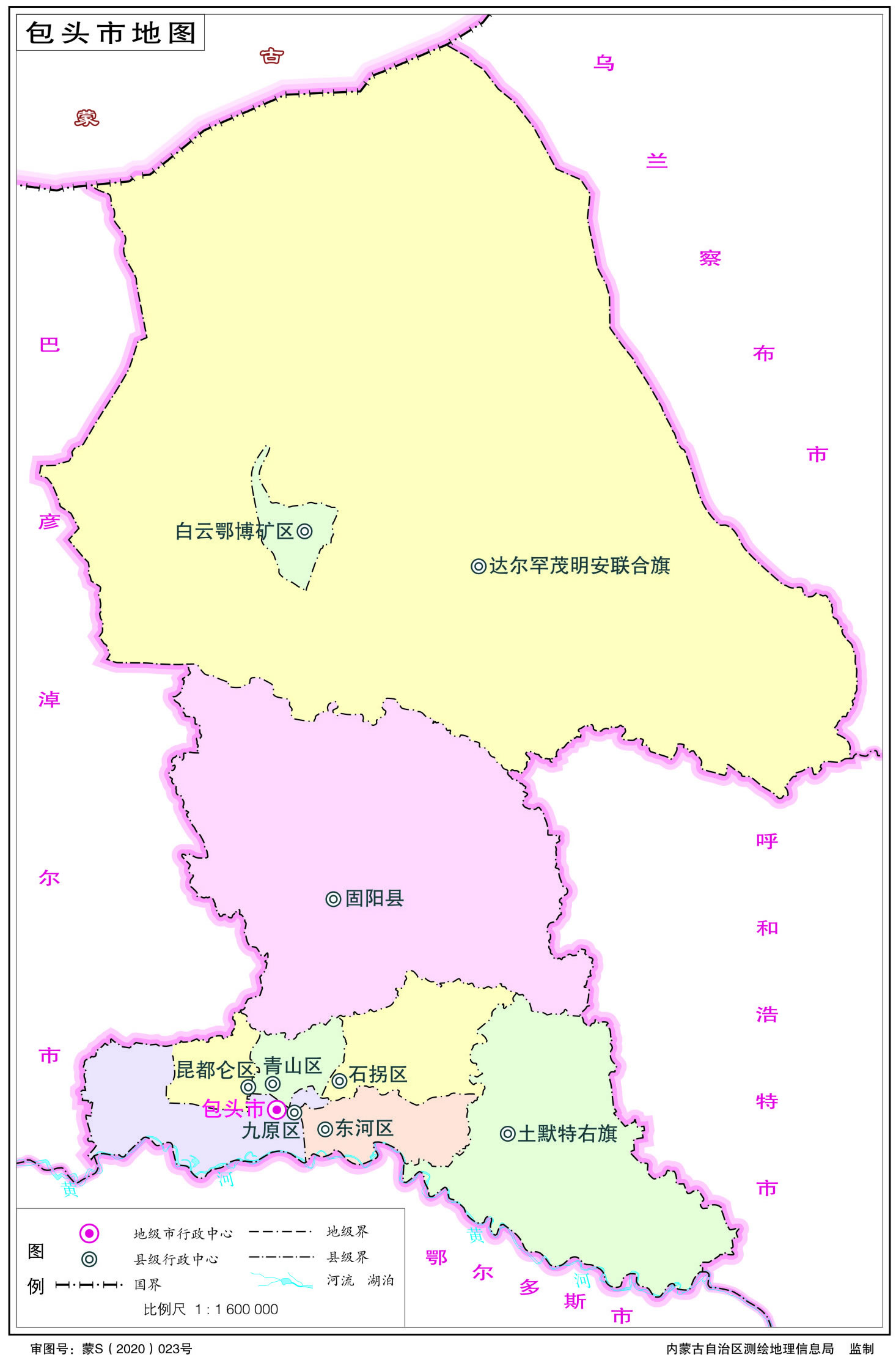 包頭市轄6個(gè)市轄區(qū)、1個(gè)縣、2個(gè)旗: