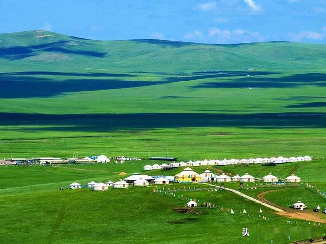 夏天這里空氣清新,氣溫涼爽,是避暑度假的勝地。 一場細(xì)雨過后,一覽草原風(fēng)光。美麗的大草原一眼望不到邊,藍(lán)天白云、碧草綠浪、湖水漣漪、牛羊成群、點點氈房、裊裊炊煙,整個草原清新寧靜。茫茫無際的牧場,傳來悠揚的牧歌,一條彎彎的小河,靜靜地流向遠(yuǎn)方。白色的羊群在山坡上吃草。遠(yuǎn)遠(yuǎn)望去,好像是白云飄浮在山間,又好似粒粒珍珠撒落在草原上!∥L(fēng)吹過,草浪滾滾,形成了一片綠色的海洋。牧羊的姑娘,唱著動聽的情歌,揮動著羊鞭,游走在美麗的草原上。傍晚,夕陽西下的時候,在霞光的輝映下,草原與天連成一片。蒙古包里響起了委婉動聽的馬頭琴聲,這動與靜相結(jié)合的草原美景,怎不叫人心曠神怡。