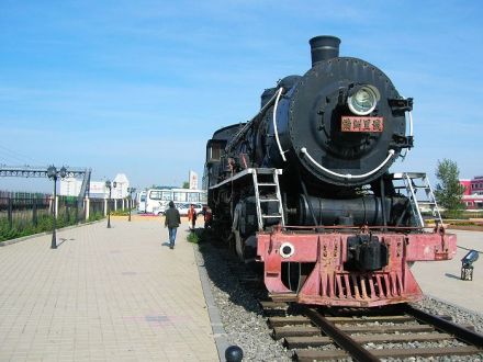 建成于2004年6月。陳列在這里的是一臺1940年日本制造的“亞西亞”型蒸汽機車,機車下面的鐵軌是1925年蘇聯(lián)制造的43鐵軌,這臺機車在中華大地上奔馳了半個多世紀,演繹了生命里程的“三部曲”,留下了許許多多鮮為人知的故事。建國初毛主席就是乘座這臺機車牽引的火車出訪蘇聯(lián)的。機車號是 “1861”,“18”代表的是滿洲里到俄羅斯后貝加爾斯克的距離,即18里。“61”是代表毛澤東在滿洲里期間,曾對駕駛這輛火車頭的司機長說過六句話:一定要與蘇聯(lián)同志搞好友鄰關(guān)系,一定要注重少數(shù)民族地區(qū)的相互團結(jié),一定要保障軍用列車的安全,一定要多學(xué)文化,一定要克服天氣寒冷帶來的困難,一定要注意身體。毛主席回國后,向全國人民發(fā)出了建設(shè)社會主義新中國的偉大號召。從1950年到1965年,這臺機車歡快地馳騁在祖國建設(shè)的鋼鐵運輸線上,立下了不可磨滅的功勛。因此,滿洲里人民又命名它為“滿洲里號”。