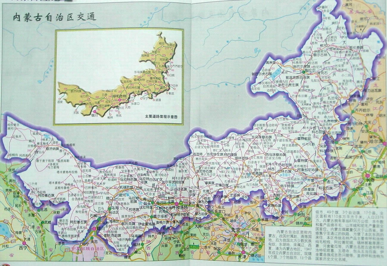 內(nèi)蒙古已形成了以首府呼和浩特市為中心的鐵路、公路、民航組成的綜合交通運(yùn)輸網(wǎng)絡(luò)。主要鐵路干線有京包線、京通線、包蘭線、濱洲線、集二線;由于該區(qū)城市少而分散,地勢平坦,因此適宜發(fā)展公路交通。公路網(wǎng)以國道為骨干,干支線相結(jié)合,溝通各盟市旗縣的交通網(wǎng)絡(luò).....