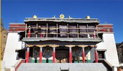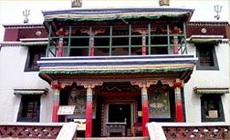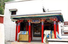 原名努尼殿,是供僧人靜坐休持的殿,用于喇嘛們以逐漸減少飲食,靜坐默誦,力圖不食不語(yǔ)的修行方式去解脫超度眾生靈。后來(lái)毀于文革動(dòng)亂。2003年國(guó)家撥款在遺址上恢復(fù)并擴(kuò)建此殿,2005年9月開始對(duì)外開放,全殿上下兩層,一樓為佛堂,供有千手千眼觀音像、六世班禪大師、宗喀巴大師像,正中供奉的三世佛為銅鑄鍍金佛像。墻上所繪壁畫是藏傳佛教九大佛寺壁畫。