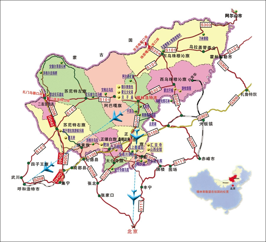 1098 公里;東鄰內蒙古自治區(qū)赤峰市、通遼市、興安盟,西接烏蘭察布盟,南與河北省承德、張家口毗鄰,總面積 20.3 萬平方公里,是距北京最近的邊疆少數民族地區(qū)。全盟轄