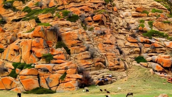6.伊吾紅石峪(伊吾前山鄉(xiāng)北部山地中,背風(fēng)坡的山地草原,有一片罕見的花崗巖山體,被凜冽的北風(fēng)風(fēng)化成丘陵?duì)睿薮蟮幕◢弾r則破碎成一個個的小塊,花崗巖破碎成類似于黃山飛來石的感覺!)