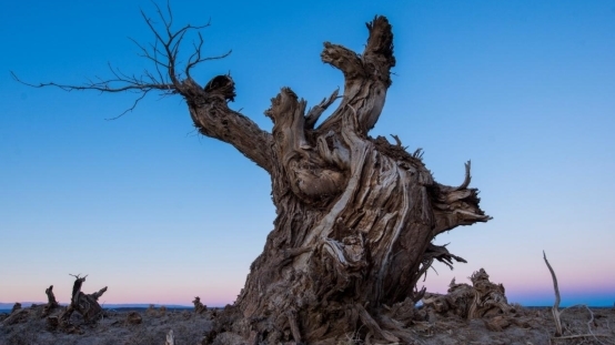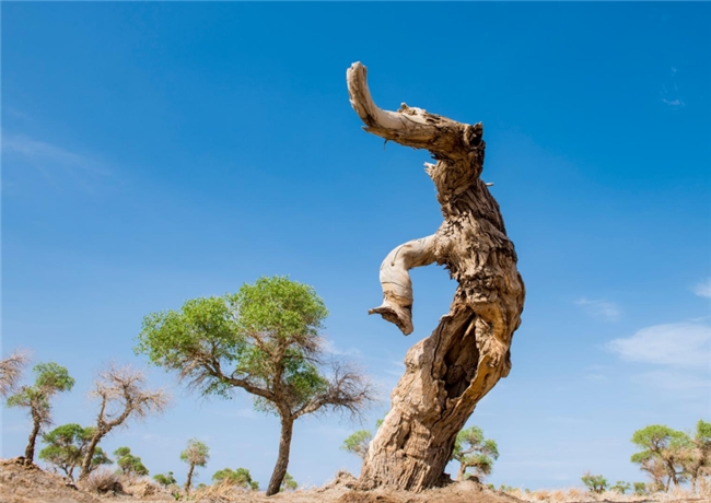九千年胡楊,這里胡楊樹形也同樣奇特,有的胡楊猶如一頭大象,象鼻朝下吸水,象背馱著元寶自遠(yuǎn)處而來,為游客帶來吉祥和財富;有的胡楊春萌新芽,夏葉婆娑,秋金滿地,冬蘊(yùn)傲骨;有的胡楊就像古代的帝王莊嚴(yán)的祭祀著天地的生靈,祈求一方祥和,護(hù)佑一方安寧。