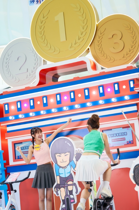 寓意慶祝勝利的凱旋門(mén)上方豎立著所有運(yùn)動(dòng)員都渴望于這國(guó)際體壇舞臺(tái)贏取的金銀銅牌,寄托了對(duì)我國(guó)運(yùn)動(dòng)員的美好祝福,游客更可參與單車(chē)互動(dòng)競(jìng)技游戲,踏上單車(chē)裝置與現(xiàn)場(chǎng)“小女車(chē)神”齊齊破風(fēng),以最快速度完成200米計(jì)時(shí)賽競(jìng)逐“車(chē)神”寶座。