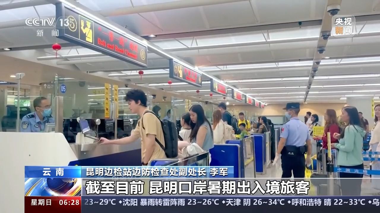 昆明邊檢站邊防檢查處副處長 李軍:截至目前,昆明口岸暑期出入境旅客達(dá)到10萬人次,出入境航班達(dá)到900余架次,同比增長70.47%和55.34%。