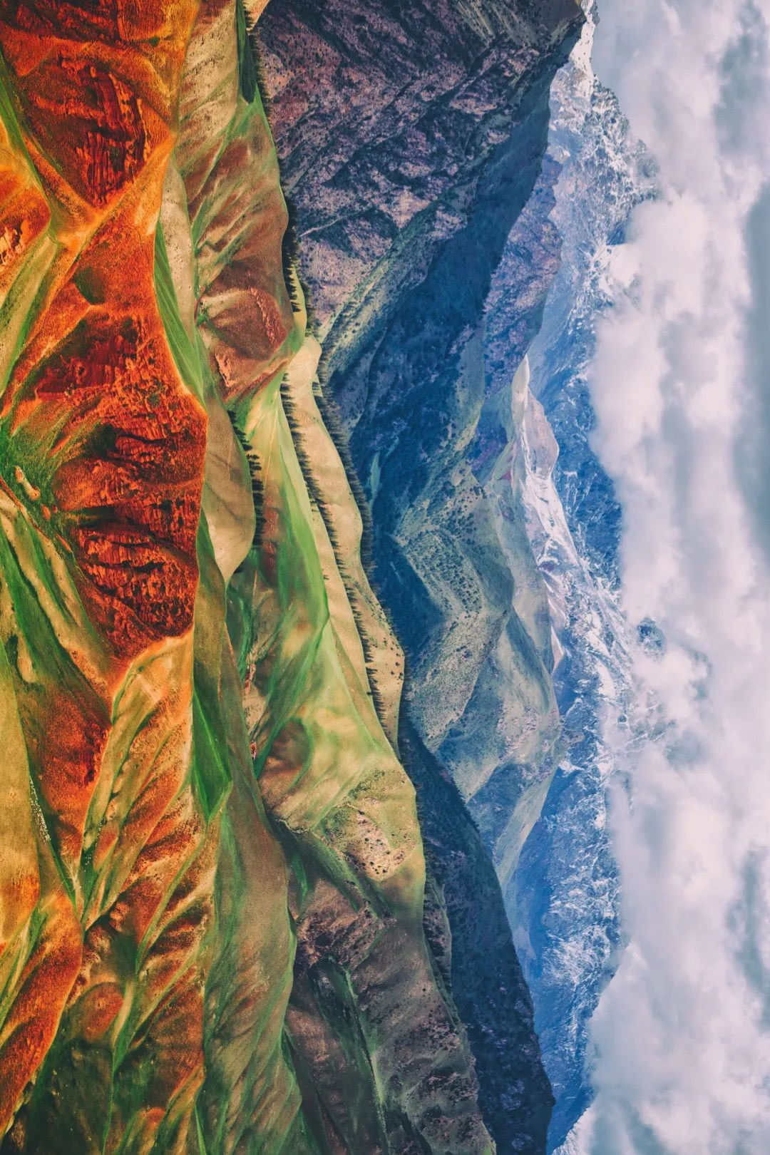 在西北干旱區(qū),從新疆、甘肅的戈壁綠洲到寧夏、陜北的黃土高原,億萬年以來沉積環(huán)境的變化造就了地層中不同化學(xué)元素的積累,顯現(xiàn)出深淺不一的色帶,地殼的構(gòu)造運動使得原本水平的地層發(fā)生不同角度的傾斜和抬升,流水的切割和風沙的吹蝕,將這些延綿不絕的彩色條帶暴露于地表,并斑駁成多種多樣的形態(tài)。