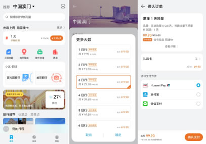 華為天際通無需更換SIM卡,可一鍵享受全球100+國家及地區(qū)的網(wǎng)絡直連服務,并在國慶期間推出了9.9元包天的流量套餐,即使長時間境外游,也可以選擇3天或7天的流量套餐,滿足各種出行需求。港澳活動套餐每天最高提升至6GB,讓你上網(wǎng)流量不受限。
