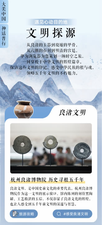 文化愛好者往往更喜歡去有歷史意義的地方,比如各處博物館、歷史古跡。在國慶頻道“遇見心動目的地”系列專題,有“文明探源”板塊。從良渚的精美玉器到殷墟的古老甲骨,從六朝的石刻藝術(shù)到明清的宮廷風(fēng)貌,縱享深入探索中華文明的悠久歷史與燦爛文化的魅力。