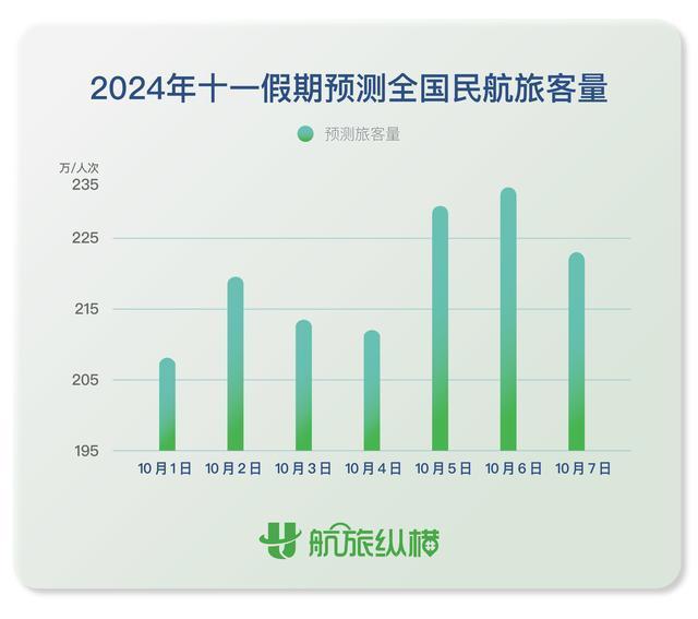 今年國(guó)慶旺季民航繼續(xù)呈“量升價(jià)跌”趨勢(shì)。據(jù)民航出行服務(wù)平臺(tái)“航旅縱橫”近日發(fā)布的報(bào)告顯示,2024年國(guó)慶假期期間(10月1日至10月7日)全國(guó)民航旅客量預(yù)計(jì)將超1565萬(wàn)人次,日均旅客運(yùn)輸量達(dá)223萬(wàn)人次,同比2023年國(guó)慶假期增長(zhǎng)7%,較2019年同期增長(zhǎng)19%。