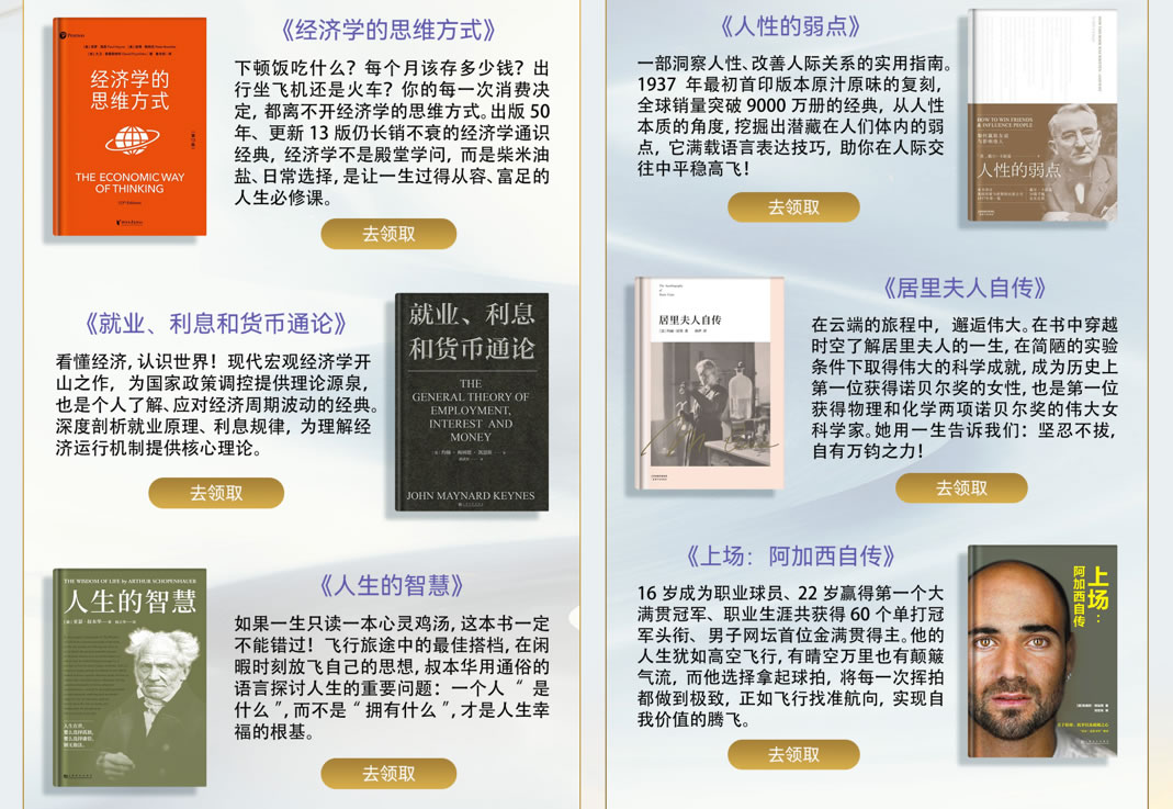 華為閱讀與國航共同精選了適合旅途閱讀的“國航伴讀書單”,包括《經(jīng)濟學的思維方式》、《就業(yè)、利息和貨幣通論》、《人生的智慧》、《人性的弱點》、《居里夫人自傳》、《上場:阿加西自傳》等好評付費書籍,并提供給國航用戶免費閱讀,為乘客的飛行時光帶來更多精神享受。