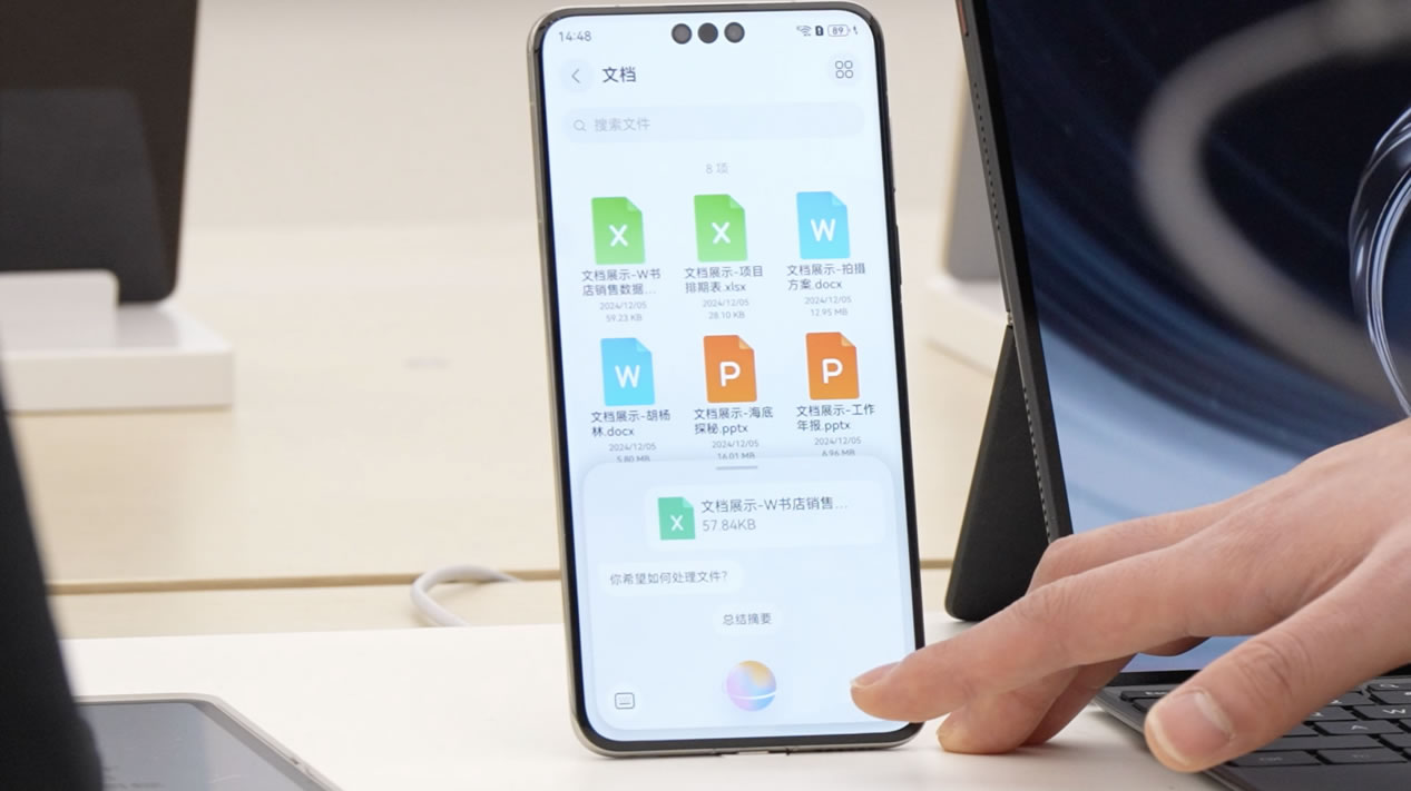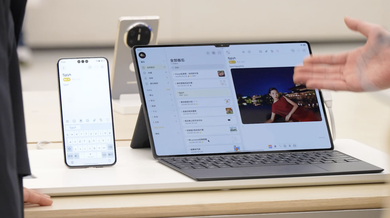 十一點,大家聚在一起頭腦風暴。張晴把方案資料共享給同事,照片、視頻、文件,甚至正在觀看的網(wǎng)站,都可以通過「華為共享」直接傳輸。面對面辦公就更方便了,兩臺手機「碰一碰」,傳送門就出現(xiàn)了。