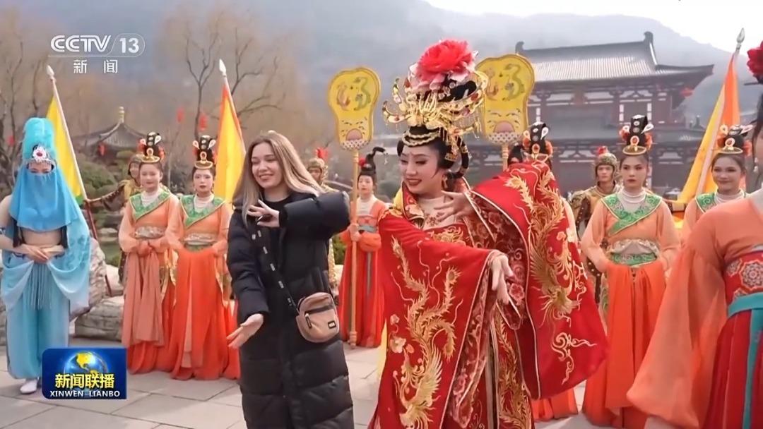 在陜西,多個(gè)國(guó)家的游客、留學(xué)生在華清宮等景區(qū),體驗(yàn)中國(guó)傳統(tǒng)文化。在四川,來(lái)自美國(guó)、俄羅斯、西班牙等國(guó)的游客,通過(guò)現(xiàn)場(chǎng)觀影、文化體驗(yàn)、古跡探訪等多種形式感受巴蜀文化。