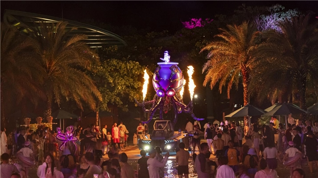 5月1日至5月5日,原創(chuàng)NPC“海洋七子”攜深海巨獸克拉肯震撼回歸,帶來周年限定的《第七重奏》夜間狂歡。這場(chǎng)演出融合了多種表演形式,將科技與海洋元素完美結(jié)合,為游客帶來一場(chǎng)充滿未來感與奇幻色彩的視覺盛宴。