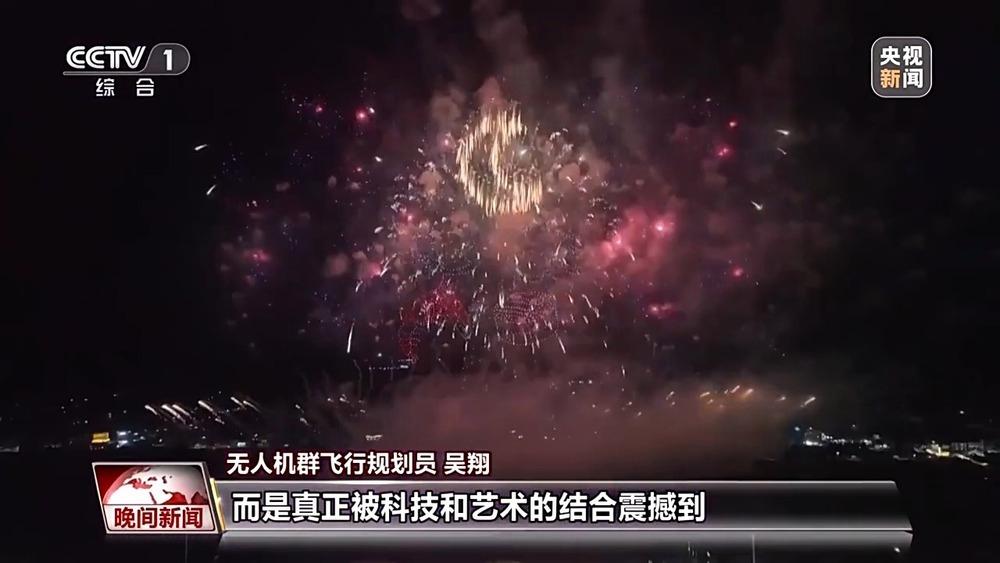 無(wú)人機(jī)群飛行規(guī)劃員 吳翔:看著它們?cè)谔焐淆R刷刷地完成我指定的一些動(dòng)作,我就特別有成就感。我就盼著觀眾在看表演的時(shí)候不只是看熱鬧,而是真正地被科技和藝術(shù)的結(jié)合震撼到,看完就能記住一輩子。