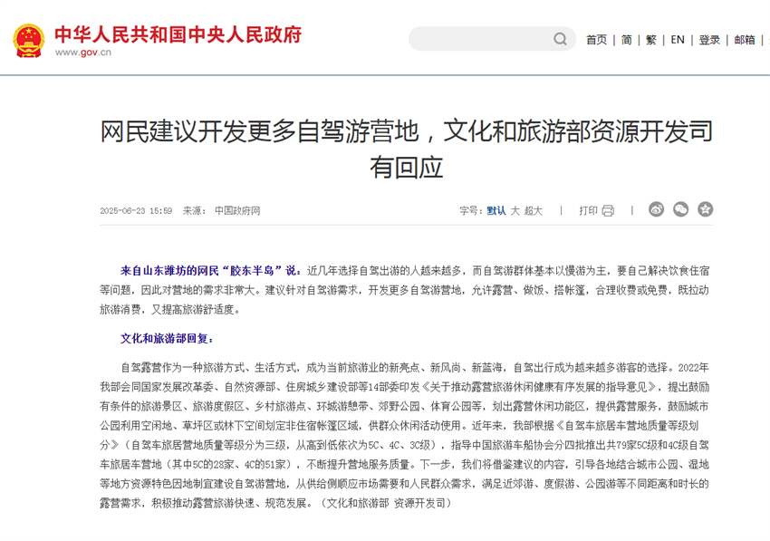 下一步,我們將借鑒建議的內(nèi)容,引導(dǎo)各地結(jié)合城市公園、濕地等地方資源特色因地制宜建設(shè)自駕游營地,從供給側(cè)順應(yīng)市場需要和人民群眾需求,滿足近郊游、度假游、公園游等不同距離和時長的露營需求,積極推動露營旅游快速、規(guī)范發(fā)展。