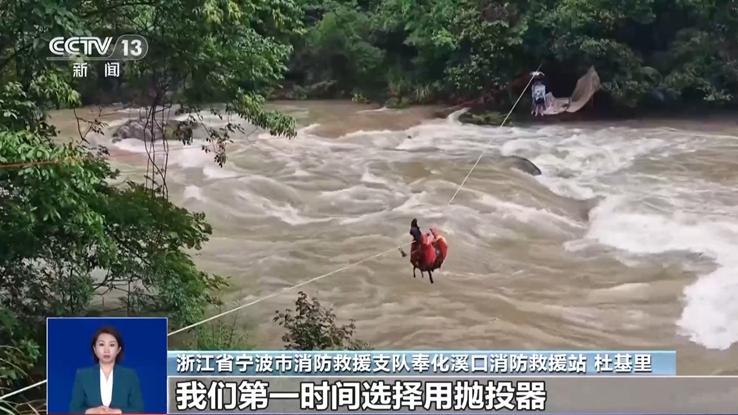 前段時間,受強降雨影響,浙江省寧波市奉化區(qū)溪口鎮(zhèn)附近河水水位暴漲。在升綱村附近河岸邊露營過夜的兩人被水圍困。