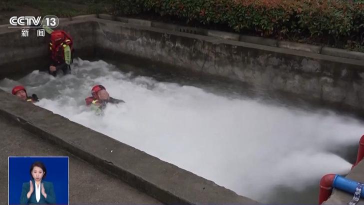 如果山洪水流傾瀉而下,人員的逃生時間能有多少?水的力量有多大?江蘇消防人員利用水域訓(xùn)練造浪裝置進行了試驗。