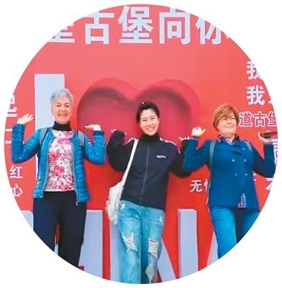 劉麗玲(中)與外國(guó)游客在張壁古堡合影。受訪者供圖