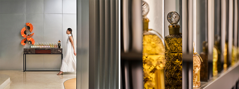 步入璞瑄酒店的嬌蘭SPA,如同進入一間頗具表現(xiàn)力的臻藝空間,藝術(shù)裝置系藝術(shù)家 Paula Bastiaansen 的作品,熠熠生輝的骨瓷,展現(xiàn)其精致、輕盈、追求永恒的詩意;同時,每一位員工皆為藝術(shù)品陳述者,設(shè)計師 Maison Duvelleroy 將扇子作為服飾的靈感,為璞瑄重新演繹注入傳統(tǒng)卻飽含先鋒設(shè)計理念的至奢制服。
