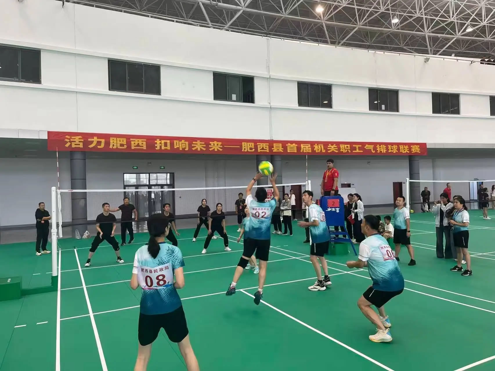 央廣網(wǎng)合肥10月12日消息(記者周然)金秋時節(jié),活力迸發(fā)。10月12日上午9時,在中國中部花木城3號館,人潮涌動,肥西縣首屆機關(guān)職工氣排球聯(lián)賽盛大開幕!來自全縣的32支參賽隊伍,數(shù)百名運動員齊聚一堂,將在未來一個多月內(nèi)點燃拼搏熱血,全力“扣”響精彩,共同演繹一場力與美的體育盛宴。