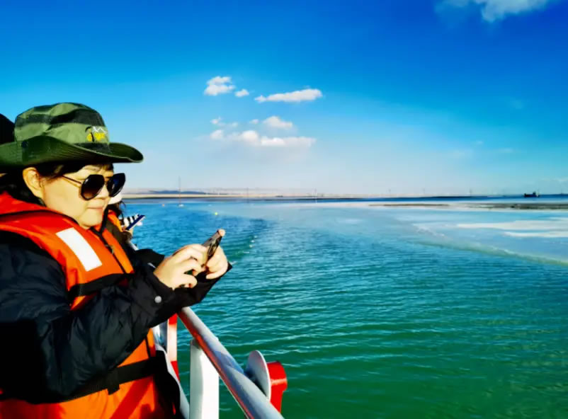 10月14日,由中共海西州委宣傳部主辦、西海都市報社承辦的“紅杞風(fēng)光別樣美 ”活動,走進海西蒙古族藏族自治州烏蘭縣,研學(xué)團隊來到茶卡鹽湖,乘坐游船觀光,湖面上駛來的大型運鹽船讓外省記者及學(xué)生不由感嘆:沒想到“天空之鏡”還有另外一種獨特景致。湖面上駛來的大型運鹽船吸引了研學(xué)團隊成員的目光。采鹽船正在鹵水中作業(yè),發(fā)出低沉的轟鳴,空氣中彌漫著咸潤的氣息。研學(xué)的同學(xué)通過實地觀察鹵水的蒸發(fā)、結(jié)晶過程,將課本上的地理、化學(xué)知識,與這片壯麗的現(xiàn)實場景融會貫通。