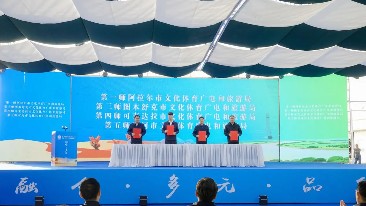 當(dāng)天,第一師阿拉爾市旅游發(fā)展大會(huì)暨第三屆塔里木文化旅游節(jié)文旅客商推介會(huì)同步舉辦。第一師阿拉爾市文化體育廣電和旅游局分別與第三師圖木舒克市、第四師可克達(dá)拉市、第五師雙河市的文化體育廣電和旅游局簽署合作共建協(xié)議,在旅游產(chǎn)業(yè)領(lǐng)域深化合作,推動(dòng)區(qū)域文旅協(xié)同發(fā)展。第一師阿拉爾市文化體育廣電和旅游局、塔里木文旅集團(tuán),以及第一師四團(tuán)、七團(tuán)、十六團(tuán)依次登臺,重點(diǎn)推介了涵蓋沙漠探險(xiǎn)、生態(tài)觀光、民俗體驗(yàn)等多個(gè)領(lǐng)域的文旅項(xiàng)目。