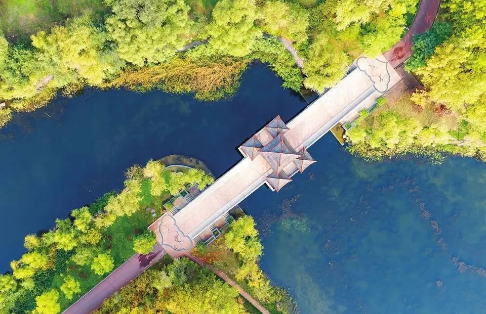 10月25日拍攝的臨汾市汾河文化生態(tài)景區(qū)。景區(qū)內(nèi)波光粼粼,水草搖曳,疊翠流金。近年來(lái),當(dāng)?shù)赝ㄟ^(guò)建設(shè)城市公園,綠化美化城市空間,實(shí)現(xiàn)開門見綠、推窗見景。(記者 李現(xiàn)。