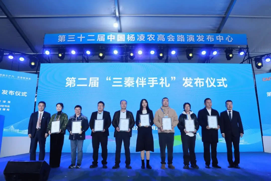 第二屆50款“三秦伴手禮”優(yōu)選產(chǎn)品名單在現(xiàn)場發(fā)布。陜西省市場監(jiān)管局黨組書記、局長張小平與楊凌示范區(qū)管委會副主任程津慶共同為獲獎企業(yè)代表授牌。