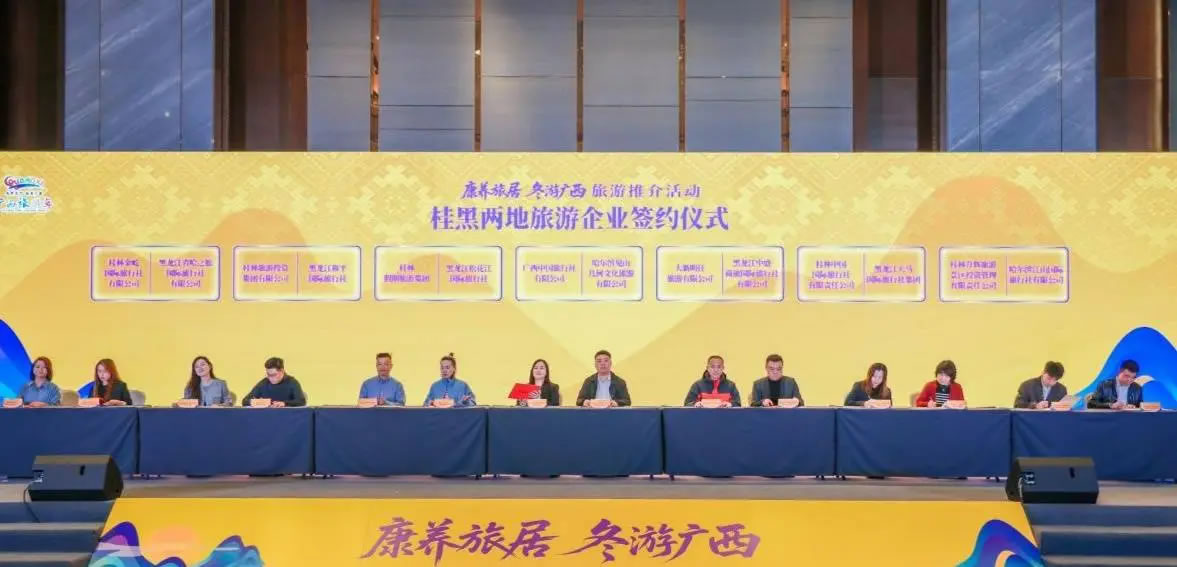 此次推介活動吸引了100多家桂黑兩地旅游企業(yè)進(jìn)行深度交流,并開展桂黑兩地文旅企業(yè)產(chǎn)品對接會,達(dá)成多項(xiàng)合作;顒蝇F(xiàn)場,7家廣西旅游企業(yè)與多家黑龍江省旅游企業(yè)成功簽約。