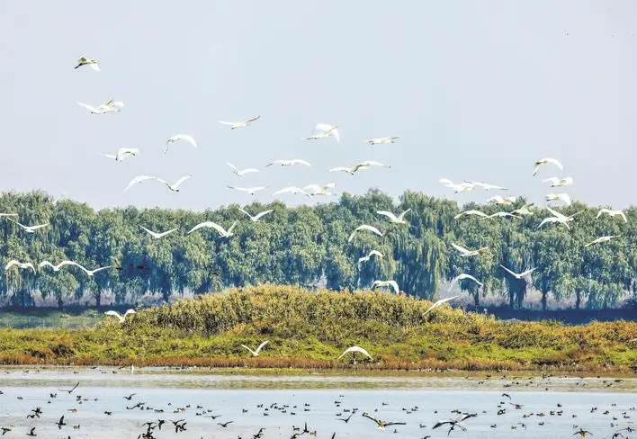近日,武漢府河濕地迎來(lái)了今年規(guī)模最大的候鳥群,化身為生機(jī)盎然的“百鳥樂(lè)園”,正式迎來(lái)一年中的最佳觀鳥期。成群的豆雁、灰雁在灘涂上休憩覓食;赤膀鴨、綠翅鴨、赤頸鴨等野鴨在蘆葦叢中嬉戲游弋;身姿優(yōu)雅的白琵鷺用它特有的鏟狀長(zhǎng)嘴在水中覓食;黑白分明的反嘴鷸則在水邊忙碌地踱步,成為濕地一道獨(dú)特的風(fēng)景線。楚天都市報(bào)極目新聞?dòng)浾咝ゎ棓z影報(bào)道