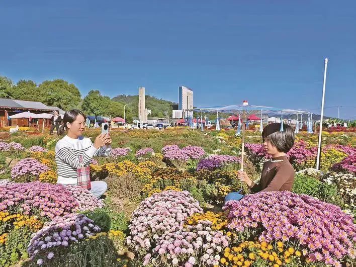 作為全省科技特派員成果展示基地,這里專注南方觀賞菊的培育與推廣,當(dāng)前盛花期可持續(xù)至12月中旬。基地年接待游客超10萬人次,已成為當(dāng)?shù)匾粡埩聋惖?ldquo;金色名片”。(全媒體記者 徐爾文 攝)