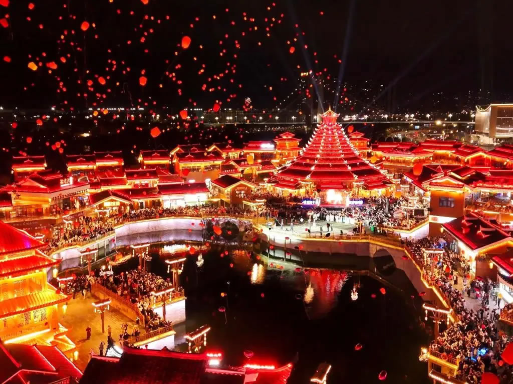 臨近午夜,榆樹灣·青春廣場迎來全天氛圍最高潮,游客們在孔明燈燈面上寫下新年愿望,在工作人員的指引下有序放飛。點(diǎn)點(diǎn)燈火隨風(fēng)飄蕩,與夜空融為一體,構(gòu)成“千盞飛燈映星河”的浪漫畫面。
