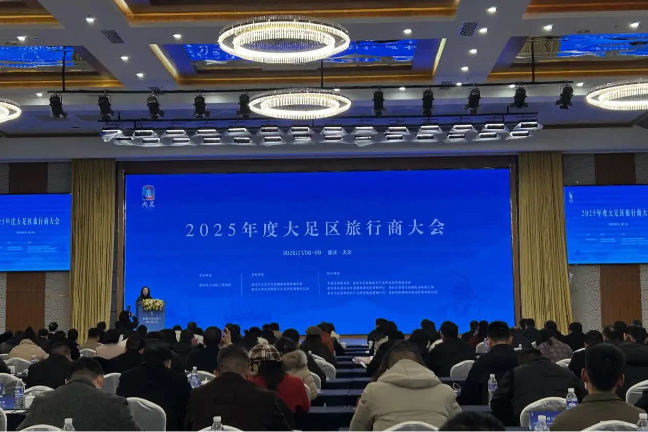 1月8日,2025年度大足區(qū)旅行商大會在重慶大足石刻學(xué)術(shù)報告廳舉行。大會不僅發(fā)布“石中三界 石外桃源”資陽大足石窟石刻文物主題游徑,還同步推出景區(qū)場景升級、文旅產(chǎn)品上新等多項舉措,以川渝聯(lián)動為核心,以業(yè)態(tài)創(chuàng)新為支撐,全面激活成渝地區(qū)雙城經(jīng)濟圈文旅消費潛力,為游客帶來兼具文化深度與體驗溫度的旅游新選擇。