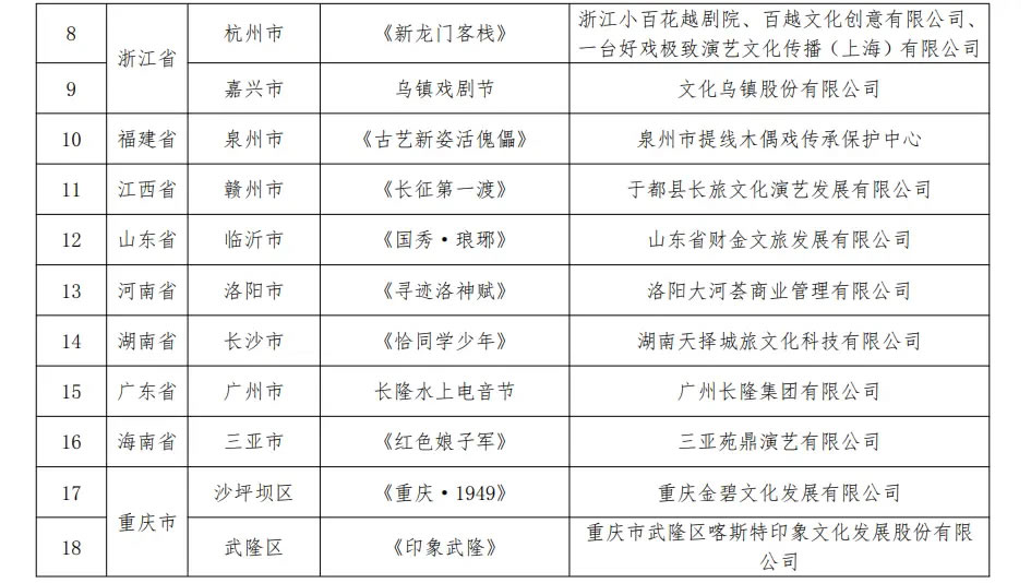 通知指出,各地文化和旅游行政部門要加強(qiáng)對(duì)入選項(xiàng)目的指導(dǎo)、支持與服務(wù),加大宣傳推廣力度,引導(dǎo)本地旅游演藝項(xiàng)目準(zhǔn)確定位,堅(jiān)持內(nèi)涵發(fā)展、可持續(xù)發(fā)展,依法演出經(jīng)營(yíng),在豐富文旅產(chǎn)品供給、促進(jìn)文旅消費(fèi)升級(jí)、帶動(dòng)區(qū)域發(fā)展中發(fā)揮更大作用。