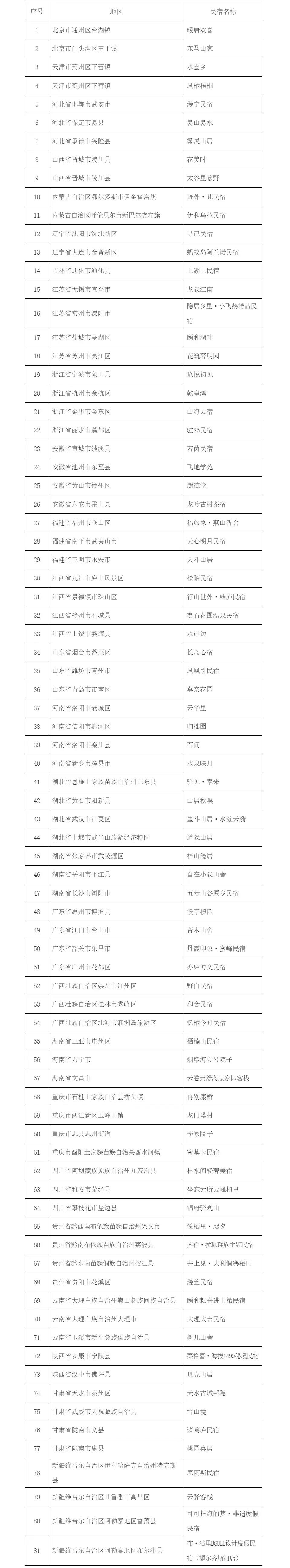 央廣網(wǎng)北京1月27日消息(記者 宋雪)據(jù)文化和旅游部網(wǎng)站消息,根據(jù)《〈旅游民宿基本要求與等級(jí)劃分〉(GB/T 41648—2022)實(shí)施工作導(dǎo)則》,81家旅游民宿符合全國(guó)甲級(jí)旅游民宿標(biāo)準(zhǔn),104家旅游民宿符合全國(guó)乙級(jí)旅游民宿標(biāo)準(zhǔn)。